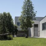 En lo que respecta al volumen edificatorio, éste se configura de modo compacto en una sola planta, remarcando la zona de acceso hacia el exterior por medio del espacio cubierto. La forma en ‘L’ de la edificación posibilita la creación de una zona de juegos con orientación Sur y Este dotando de privacidad a la misma respecto el resto del patio.