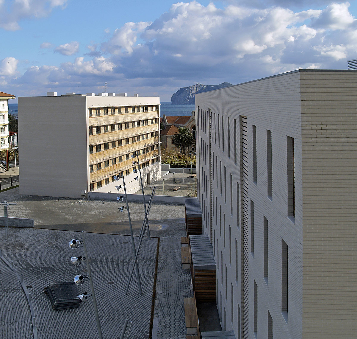 Los dos edificios forman dos plazas, una de ellas muy protegida y otra dialogante con el mar y el paisaje, como un balcón con el entorno.