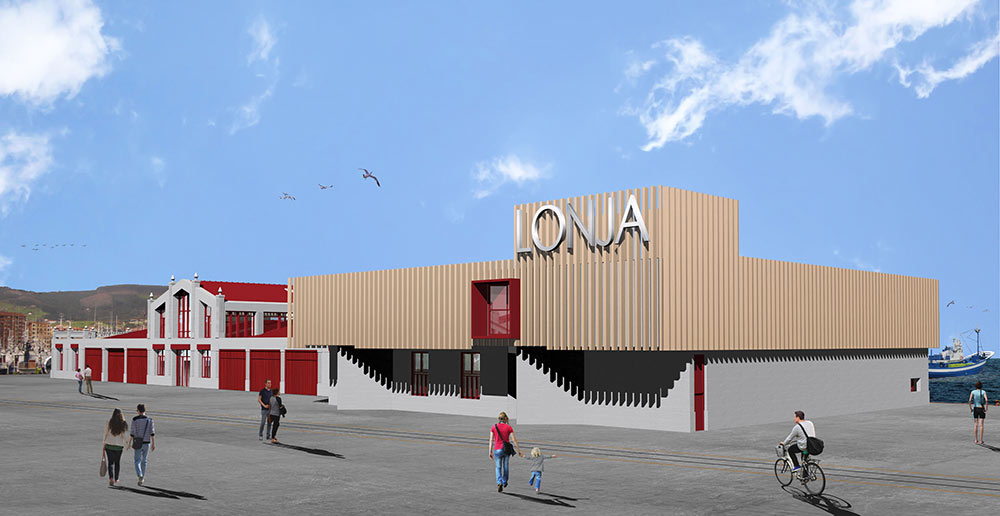 La idea del proyecto es muy sencilla: se ha anexado al edificio existente un módulo repitiendo su geometría, de esta forma se consiguen tres posibles espacios modulables de venta de pescado en PB (aunque la tercera sublonja se utiliza para el lavado y almacén de cajas en PB. Estas tres sub-lonjas L1, L2 y L3 podrán estar unidas por un eje de comunicación junto al cantil por donde circulan las cajas, hielo y pescado en el caso de usar la nueva sublonja para venta en casos de pesca excepcional.
